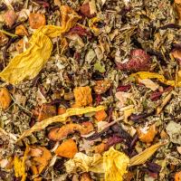 Состав: лист малины, мяты, чёрной смородины, яблоко, гибискус, лепестки подсолнуха, нат. аромат. «Малина». Традиционно русский вкус мятного чая великолепно оттеняют ноты свежей малины. Сбор прекрасно тонизирует и освежает. (1,5 г/100 мл/85°С/3-4 мин)